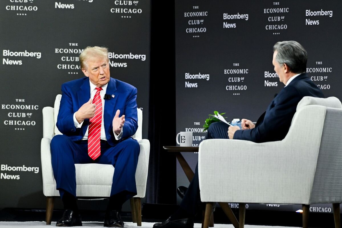 W wywiadzie z redaktorem naczelnym Bloomberga Johnem Micklethwaitem dla Economic Club of Chicago, Trump argumentował, że jego propozycje gospodarcze przyniosą więcej pożytku niż szkody. Stwierdził również, że zamieszki na Kapitolu 6 stycznia 2021 roku były pokojowymi protestami. Mówił też o obawach związanych z jego planami imigracyjnymi i masowymi deportacjami oraz jakie mogą one mieć wpływ na gospodarkę i nie tylko. Wywiad w dużej mierze koncentrował się właśnie na kwestii gospodarczej, która zresztą dla wyborców jest najważniejszą obecnie sprawą, mogącą zaważyć na tym kto zostanie następnym prezydentem USA. Zapytany o swoje przemyślenia na temat taryf, Trump powiedział, że to „najpiękniejsze słowo w słowniku”. „To moje ulubione słowo. Potrzebuje firmy public relations, by mu pomóc, ale to najpiękniejsze słowo” – powiedział kandydat Republikanów na prezydenta. Twierdził, że jego plany wdrożenia, w niektórych przypadkach, ceł do 100% sprowadzi firmy z powrotem do Stanów Zjednoczonych. Micklethwait zadał pytania dotyczące utraty miejsc pracy przez firmy polegające na Chinach w swojej działalności i handlu, mówiąc: „możesz pogrążyć Amerykę w największej wojnie handlowej”. „Istnieje wiele miejsc pracy, które zależą od przyjazdu obcokrajowców. Zamierzasz w zasadzie zatrzymać handel z Chinami. Mówisz o 60% cłach na to. Mówimy również o 10-20% cłach na resztę świata. To będzie miało poważny wpływ na całą gospodarkę” – powiedział Micklethwait. Były prezydent odpowiedział: „Zgadzam się, że będzie to miało ogromny wpływ – pozytywny wpływ”. Trump zmierzył się również z pytaniami o wpływ takich taryf na politykę zagraniczną. „Mówisz o uderzeniu w sojuszników taryfami w wysokości 30%, 20%. Czy tym razem zamiast zjednoczyć nie podzielisz Zachodu? Ciągle przywołujesz te pojedyncze przykłady, ale ogólny efekt będzie dramatyczny” – mówił dziennikarz. Trump, który powiedział, że „nigdy nie byliśmy tak blisko III wojny światowej jak teraz”, argumentował, że sojusznicy USA „wykorzystali nas bardziej niż nasi wrogowie”. Stwierdził, że handlowo nas bardzo oszukują także ci z Europy. A w dodatku wykorzystali nas w kwestii wojskowości. Więc czerpią z nas ogromną korzyść. Trump od dawna krytykuje NATO, a jego były bliski doradca John Bolton ostrzegł, że może dążyć do wycofania USA z sojuszu, jeśli wróci do Białego Domu. Donald Trump zapytany o obawy, że jego polityka doprowadzi do wzrostu inflacji i spowoduje ogromne zadłużenie zauważył, że ceny były znacznie niższe za jego prezydentury. W czerwcu 16 nagrodzonych Nagrodą Nobla ekonomistów podpisało list wyrażający obawę, że propozycje Trumpa „ponownie rozpalą inflację”. Odrębne badanie przeprowadzone przez Peterson Institute for International Economics przewidywało, że polityka Trumpa spowoduje wzrost inflacji aż o 9,3% w 2026 r., w przeciwieństwie do obecnie przewidywanych 1,9%.
