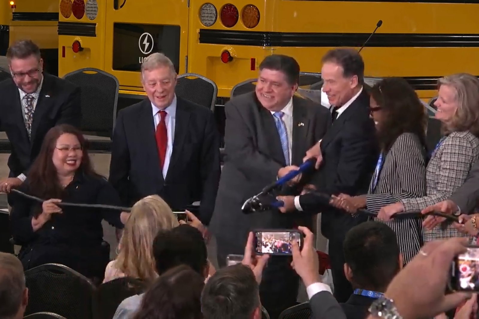 Gubernator J.B. Pritzker i senatorzy reprezentujący nasz stan w Waszyngtonie Tammy Duckworth i Dick Durbin wzięli udział w piątek w otwarciu fabryki samochodów elektrycznych w Channahon w Illinois.