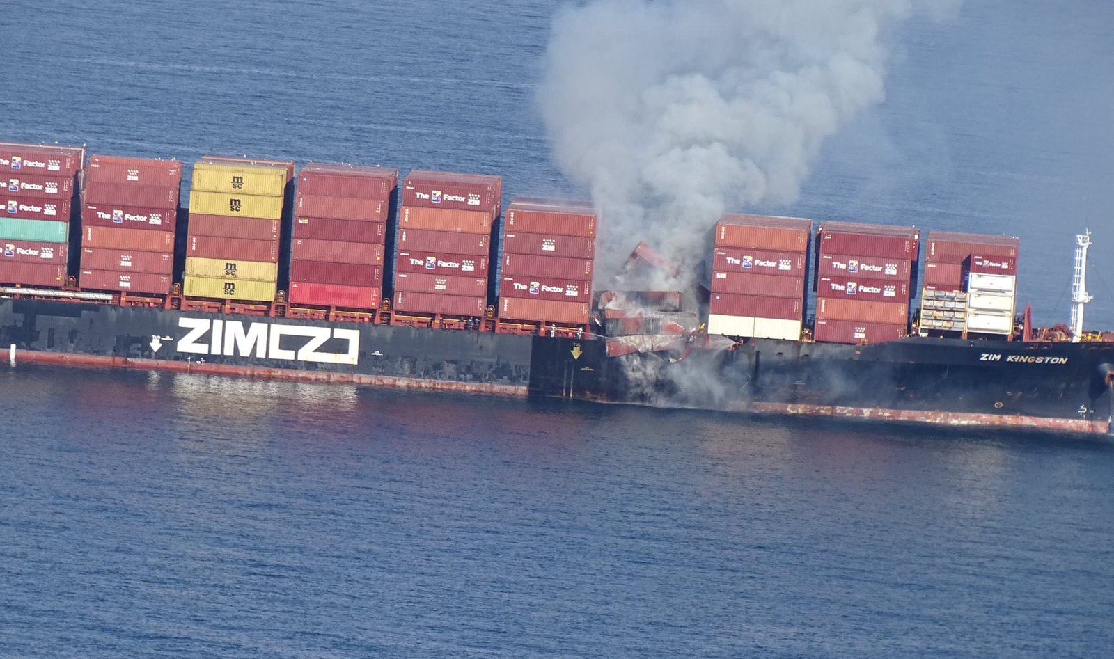 Służby otrzymały zgłoszenie o pożarze na kontenerowcu MV Zim Kingston wczoraj rano czasu miejscowego. Jak poinformowano, 16 z 21 członków załogi zostało ewakuowanych, pięciu pozostało na jednostce. Ogółem pali się sześć kontenerów. Statek transportuje ponad 52 tony chemikaliów używanych w przemyśle wydobywczym, co jest zagrożeniem dla środowiska. Według ostatnich informacji, ogień zajmuje coraz większą część jednostki. Ustanowiono strefę bezpieczeństwa wokół kontenerowca o promieniu kilometra i sześciuset metrów. Inne jednostki pływające są informowane o zdarzeniu i zaleca się im omijanie tego miejsca.