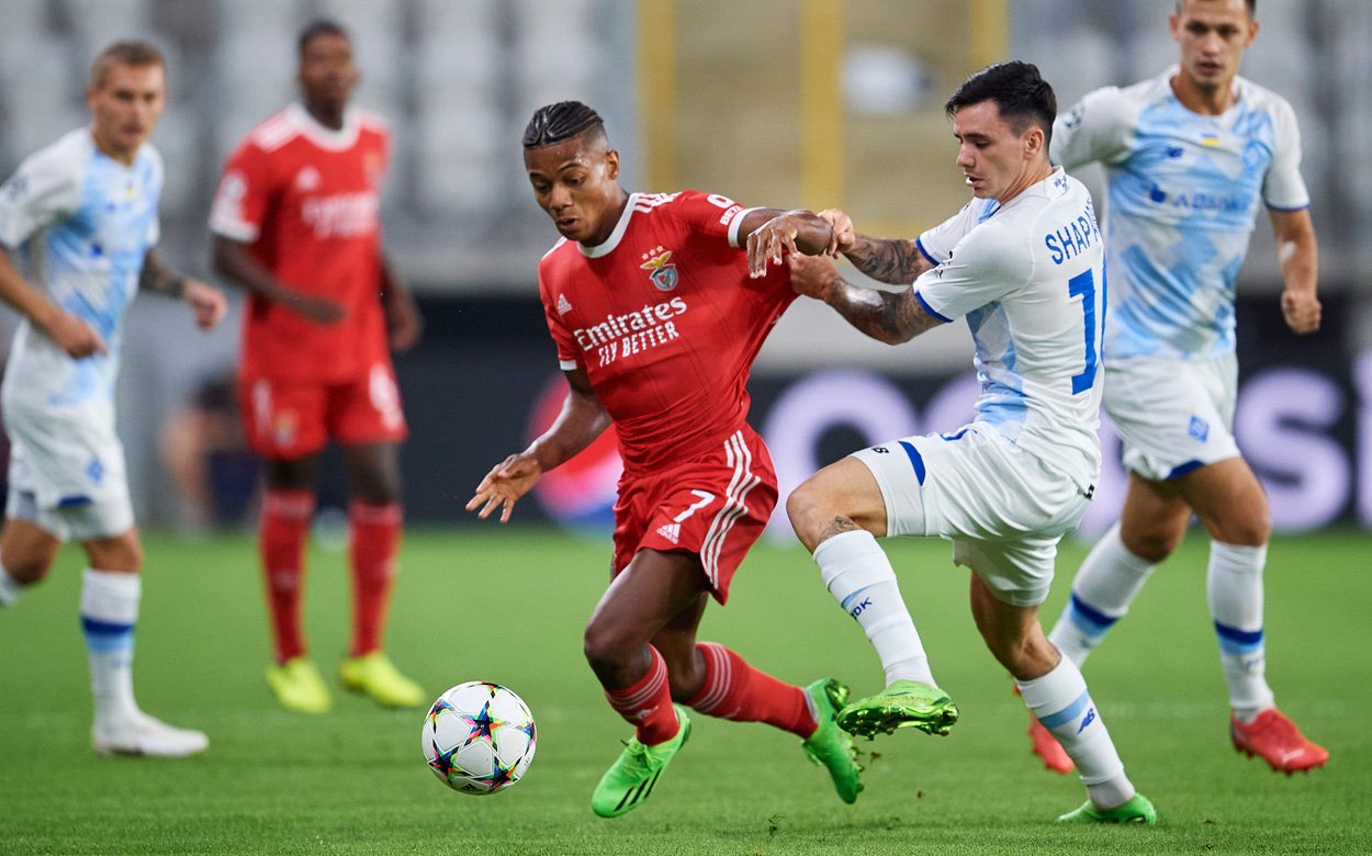 Dynamo Kijów przegrało z Benficą Lizbona 0:2 (0:2) w pierwszym meczu ostatniej, czwartej rundy kwalifikacji do fazy grupowej piłkarskiej Ligi Mistrzów. W związku z agresją Rosji na Ukrainę spotkanie rozegrane zostało na stadionie ŁKS-u Łódź. W drużynie gospodarzy całe spotkanie rozegrał obrońca reprezentacji Polski – Tomasz Kędziora. W pozostałych środowych meczach Karabach Agdam bezbramkowo zremisował z Viktorią Pilzno, a Maccabi Hajfa wygrało z Crveną Zvezda 3:2 (1:2). Rewanże za tydzień.
