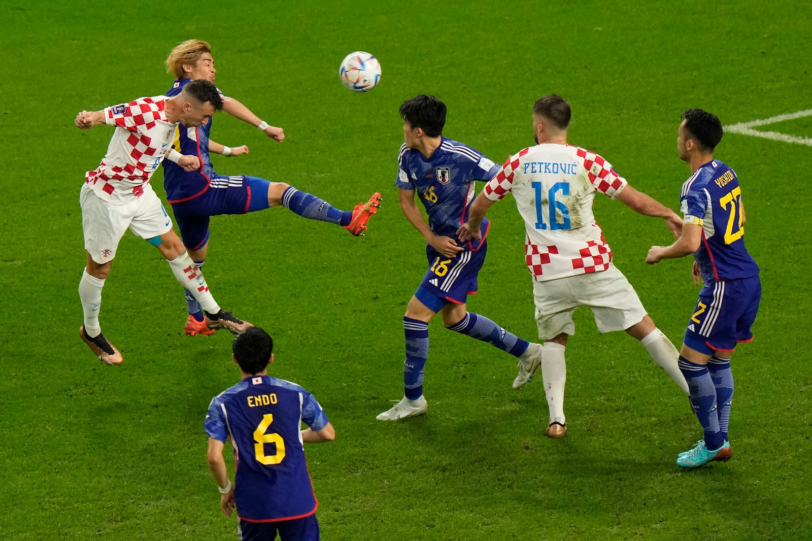 horwacja awansowała do ćwierćfinału piłkarskich mistrzostw świata w Katarze. W rozegranym na stadionie Al Janoub w Al Wakrah meczu 1/8 finału pokonała po rzutach karnych Japonię. W regulaminowym czasie gry padł remis 1:1 (0:1). Japończycy objęli prowadzenie w 43. minucie po golu Daizena Maedy. Wyrównał w 55. minucie Ivan Perišić. Dogrywka nie przyniosła zmiany wyniku. Konkurs „jedenastek” zakończył się zwycięstwem Chorwatów 3-1.