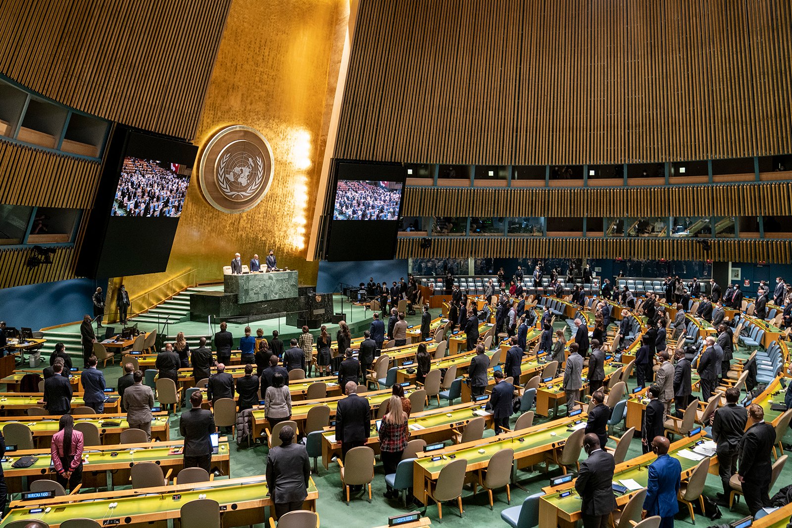 Polski dyplomata oświadczył, że doniesienia o dyskryminacji rasowej, której rzekomo dopuszcza się Polska podczas przyjmowaniu uchodźców, są kłamstwem i oszczerstwem wobec Polski. Ukraiński ambasador ostrzegał, że jeśli Ukraina nie przetrwa, zagrożony będzie zarówno pokój międzynarodowy, jak i Narody Zjednoczone. Natomiast ambasador Rosji Wasilij Nebenzia powtarzał, że w Ukrainie trwa „specjalna operacja wojskowa” w obronie dwóch separatystycznych obszarów i że jest ona jest „fałszywie przedstawiane przedstawiana” zarówno przez polityków jak i przez media. Podczas obrad przed siedzibą Organizacji Narodów Zjednoczonych trwały protesty przedstawicieli ukraińskich organizacji i nowojorczyków.