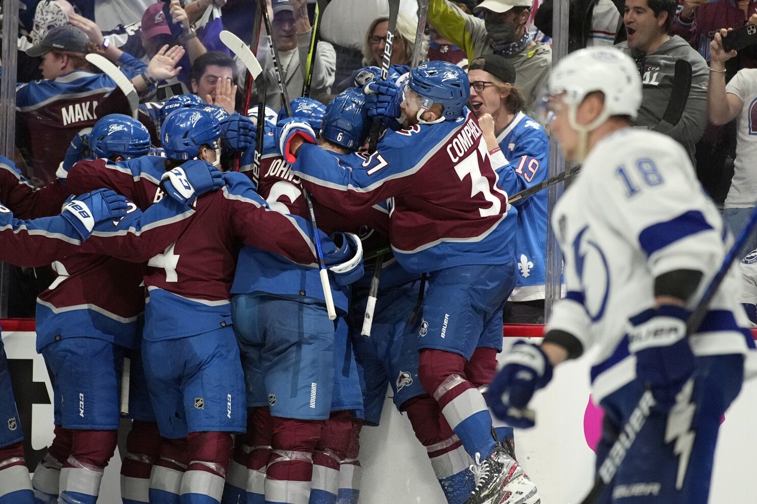 Hokeiści Colorado Avalanche pokonali przed własną publicznością broniących tytułu Tampa Bay Lightning 4:3 po dogrywce w pierwszym meczu finału Pucharu Stanley’a. Decydującego gola strzelił reprezentant Szwecji André Burakovsky. Rywalizacja toczyć się będzie do czterech zwycięstw. Następne spotkanie także w Denver w sobotę.