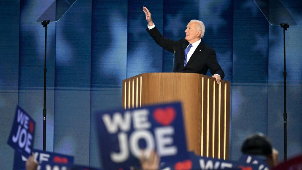 Podkreślał, że nie ma zgody na przemoc w polityce. „Miałem wtedy przed sobą miasto otoczone Gwardią Narodową. Za plecami miałem Kapitol, który dwa tygodnie wcześniej został napadnięty przez brutalny tłum. Wiedziałem wtedy jednak to, co teraz: w Ameryce nie ma miejsca na polityczną przemoc. Nie możesz mówić, że kochasz swój kraj tylko wtedy, gdy wygrywasz” – mówił Joe Biden. Prezydent wezwał Amerykanów, by wybrali Kamalę Harris na kolejnego prezydenta Stanów Zjednoczonych. Delegaci przywitali go kilkunastominutowymi owacjami na stojąco i okrzykami „Kochamy Cię Joe!”. Biden podkreślił swoje osiągnięcia w trakcie kadencji. „Covid już nie decyduje o naszym życiu. Wyszliśmy z kryzysu i zbudowaliśmy najsilniejszą gospodarkę na świecie. Stworzyliśmy 16 milionów nowych miejsc pracy” – mówił prezydent. Joe Biden powiedział, że kocha swoją pracę, ale zrezygnował z walki o reelekcję, bo jeszcze bardziej kocha swój kraj. „Ameryko! Dałem Ci z siebie wszystko co najlepsze” – cytował słowa patriotycznego utworu „American Anthem”. Joe Biden krytykował kandydata Republikanów Donalda Trumpa za to, że przedstawia Amerykę jako upadający kraj, że podziwia dyktatorów i podważa sojusze. Zapowiedział, że zrobi wszystko by Kamala Harris została następnym prezydentem USA.
