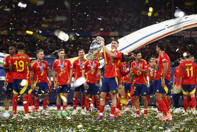 Bramki dla zwycięzców zdobyli Nico Williams (47′) i Mikel Oyarzabal (86′). Dla pokonanych trafił Cole Palmer (73′). To czwarty Puchar Henriego Delaunaya w dorobku Hiszpanów. Wcześniej triumfowali w czempionacie Starego Kontynentu w 1968, 2008 i 2012 roku. Ponadto Hiszpan Rodri został uznany za najlepszego piłkarza Euro 2024. 28-letni pomocnik, który na co dzień broni barw Manchesteru City, nie dotrwał do końcowego gwizdka decydującego meczu – został zmieniony w przerwie. Z kolei najlepszym graczem młodego pokolenia został jego kolega z reprezentacji – Lamine Yamal. 17-letni skrzydłowy Barcelony, który w Niemczech został najmłodszym uczestnikiem mistrzostw Europy, a także najmłodszym strzelcem gola w turnieju finałowym, zakończył imprezę z jednym golem i czterema asystami na koncie.