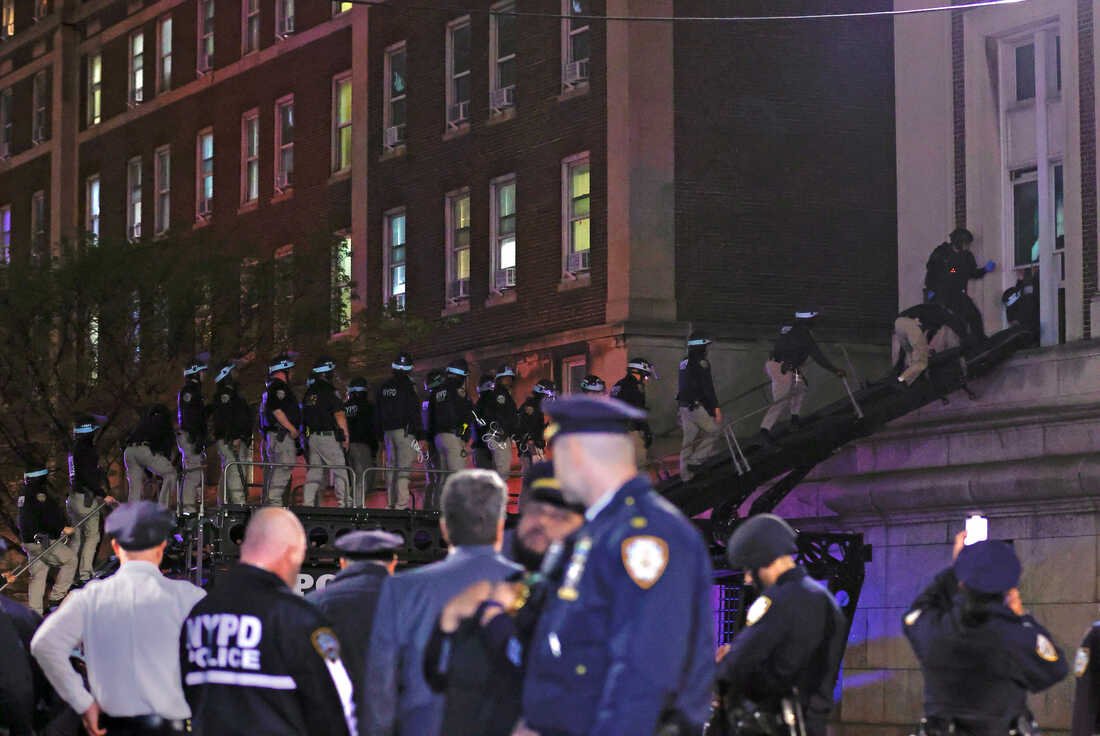 Późnym wieczorem czasu lokalnego kilkuset policjantów w kaskach, z pałkami i tarczami oraz opaskami zaciskowymi zgromadziło się przy wejściu na Uniwersytet Columbia. Funkcjonariusze wkroczyli do budynku administracyjnego Hamilton Hall, który dwanaście godzin wcześniej opanowali protestujący. Policjanci dostali się do środka przez okna i drzwi, po czym aresztowali co najmniej kilkudziesięciu protestujących, których wywieziono z uczelni autobusami. Dokładna liczna zatrzymanych nie jest na razie znana. Władze uczelni poinformowały, że akcja została przeprowadzona na ich wniosek. Wcześniej okupację budynku Uniwersytetu Columbia skrytykował Biały Dom. „Prezydent Biden szanuje prawo do wolności słowa, ale protesty muszą być pokojowe i zgodne z prawem” – oświadczył rzecznik Białego Domu, Andrew Bates. Rzecznik Rady Bezpieczeństwa Narodowego Białego Domu, John Kirby, powiedział, że okupacja budynku uczelni to „absolutnie niewłaściwe podejście” i że nie jest to przykład pokojowego protestu. Na dziesiątkach amerykańskich uczelni doszło w ostatnich dniach do propalestyńskich protestów. Dotychczas policja zatrzymała ponad 1200 demonstrantów. Niemal wszyscy zostali później zwolnieni.