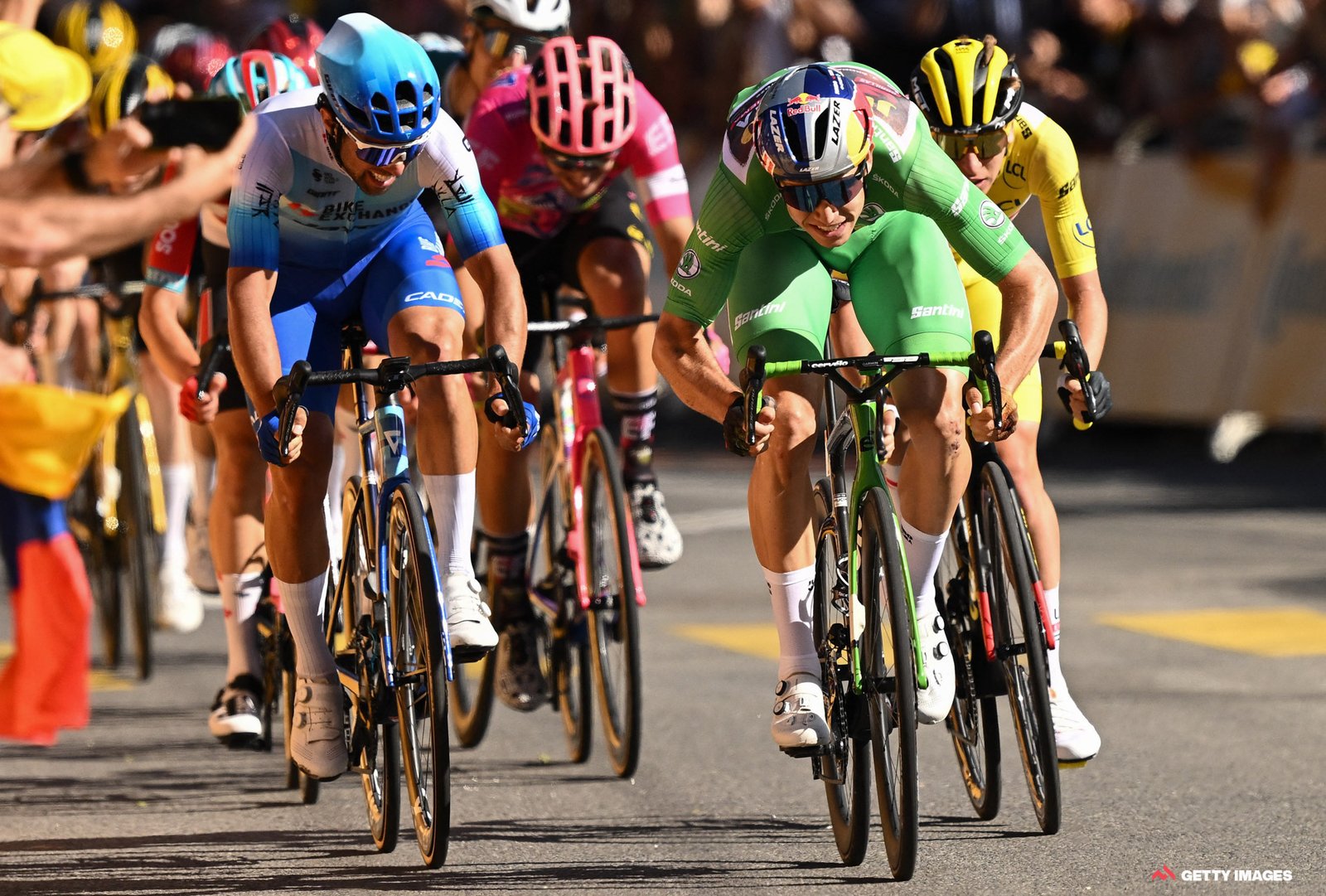 Matthews był najlepszy z licznej, ponad 20-osobowej grupy. Stoczył zażartą rywalizację z Włochem Alberto Bettiolem (EF Education-EasyPost), którego ostatecznie wyprzedził o 15 sekund. Trzeci był Francuz Thibaut Pinot (Groupama – FDJ, +0:34). Najlepsi z faworytów całego wyścigu zajęli miejsca w trzeciej dziesiątce, tracąc ponad 12 i pół minuty (12:34) – to Słoweniec Tadej Pogačar (UAE Team Emirates) i Vingegaard. Rafał Majka (UAE Team Emirates) ze stratą 15 minut był 37. Później pozostali Polacy: Łukasz Owsian 58. (Arkéa Samsic, +21:50), Kamil Gradek – 139. (Bahrain – Victorious, +25:35), Maciej Bodnar – 145. (TotalEnergie, +25:35). W klasyfikacji generalnej prowadzący Vingegaard ma 2 minuty i 22 sekundy przewagi nad Pogačarem oraz 2 minuty i 43 sekundy nad Brytyjczykiem Geraintem Thomasem (INEOS Grenadiers). Majka ze stratą ponad 34 minut (34:14) jest 22. Owsian 53. (+1.26:12), Gradek – 128. (+2.45:44), Bodnar – 144. (+3.03:21). W niedzielę 15. etap i szansa dla sprinterów – 202 kilometry ze startem w Rodez i metą w Carcassonne.