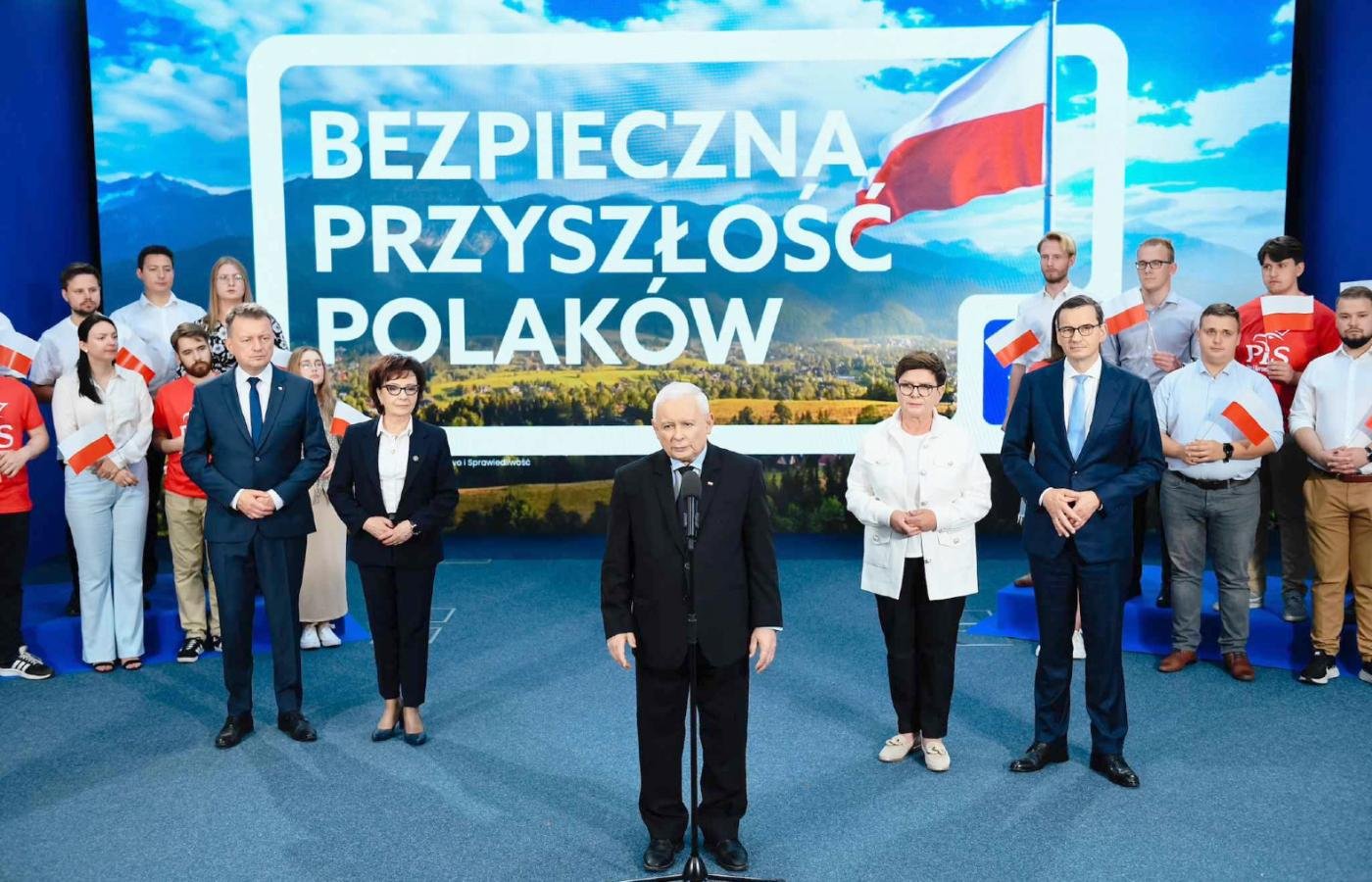 „Czynimy wszystko i robimy to skutecznie, aby bezpieczeństwo stale rosło. Przede wszystkim w sposób dotąd niespotykany rozbudowujemy naszą armię. W niedługim czasie będziemy mieć najsilniejszą armię lądową w Europie”- mówił prezes PiS. Jarosław Kaczyński podkreślił, że takie działania są podstawową przesłanką bezpieczeństwa, gdyż „bronieni przez sojuszników są tylko ci, którzy sami się bronią”. Prezes PiS powiedział też, że jego ugrupowanie stara się zapobiegać zagrożeniu, jakie stanowi wojna hybrydowa. Wicepremier zaznaczył, że do prowokacji na polsko-białoruskiej granicy wykorzystywani są między innymi imigranci. „My się bronimy. Wybudowaliśmy ogrodzenie, które może będzie jeszcze rozbudowywane. Koncentrujemy wojska, reagujemy na obecność Grupy Wagnera na Białorusi. Czynimy wszystko, by nasze społeczeństwo było bezpieczne i sądzę, że będziemy w tym naprawdę skuteczni, chociaż może dojść do różnego rodzaju prowokacji” – mówił wicepremier. Jarosław Kaczyński podkreślił również, że bezpieczeństwo Polski odnosi się też do kwestii energetycznych i niezależność naszego kraju w tym sektorze. „W ciągu ostatnich lat doprowadziliśmy do tego, że dzisiaj Polska jest energetycznie bezpieczna. Nie może być szantażowana przez brak dostaw energii lub przez podnoszenie cen. Jest państwem pod tym względem niezależnym, jest to nasze wielkie osiągnięcie i kolejna przesłanka, żeby powiedzieć z pełną odpowiedzialnością – jesteśmy formacją bezpieczeństwa” – dodał prezes. Prezes Prawa i Sprawiedliwości powiedział, że hasło wyborcze ugrupowania nawiązuje także do bezpieczeństwa socjalnego. Wicepremier dodał, że w bezpieczeństwie socjalnym chodzi o to, żeby każda polska rodzina była zabezpieczona w kwestii materialnej. „W dużej mierze jest to kwestia pracy. My uczyniliśmy bardzo wiele, żeby ta praca była. Między innymi wielkie tarcze z czasów Covidu oraz metody walki z inflacją. Jeśli zaś chodzi o programy socjalne to były one naprawdę ogromne, więc można mówić o wielkiej polityce społecznej” – mówił Jarosław Kaczyński. W prezentacji hasła wzięli też udział marszałek Sejmu Elżbieta Witek, premier Mateusz Morawiecki oraz wiceprezesi partii Mariusz Błaszczak i Beata Szydło. Wybory parlamentarne, połączone z referendum, odbędą się 15 października.