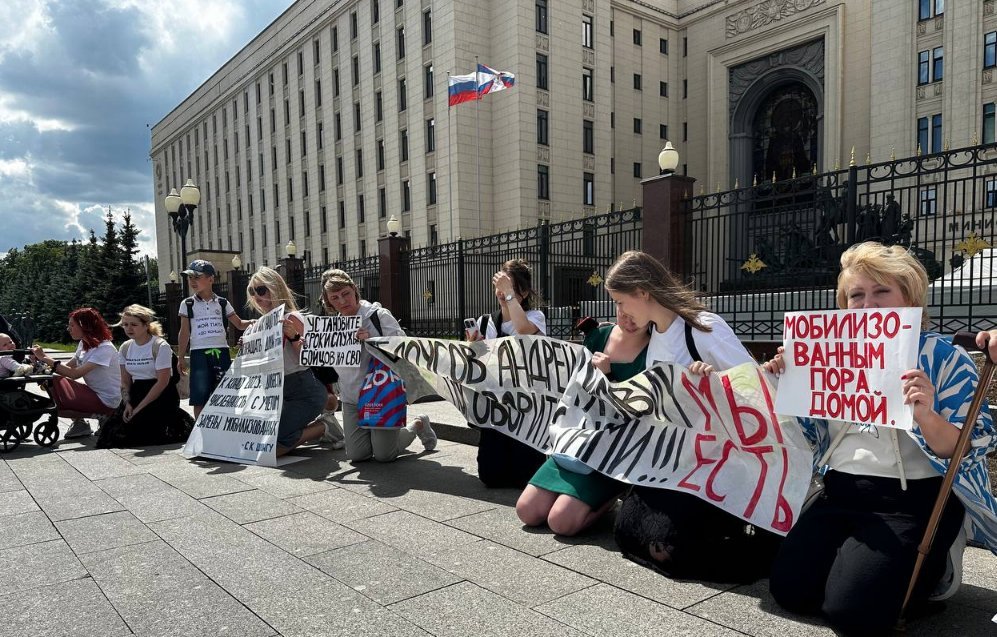 Kobiety zabiegały o spotkanie z nowym ministrem obrony Andriejem Biełousowem. Wyszedł do nich rzecznik ministerstwa, który oświadczył, że nie może im pomóc, „bo decyzję o mobilizacji podjął prezydent, zwierzchnik sił zbrojnych”. Wcześniejsze akcje protestu żon zmobilizowanych często kończyły się zatrzymaniami. Policja zabierała do samochodów głównie mężczyzn, często dziennikarzy, którzy przyjeżdżali, aby relacjonować akcję. Pod koniec maja rosyjskie ministerstwo sprawiedliwości uznało ruch kobiet zmobilizowanych żołnierzy pod nazwą „Droga do domu” za „zagranicznego agenta”. Uczestniczki ruchu domagają się powrotu swoich mężów ze strefy działań wojennych na Ukrainie.