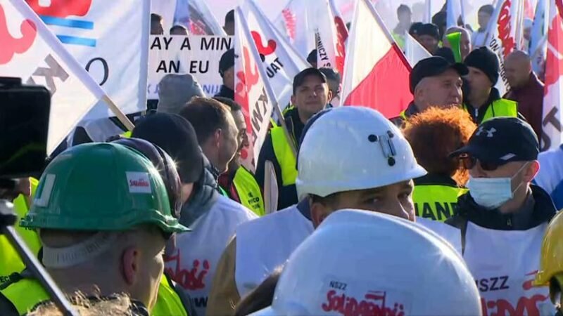 Protest Solidarności przeciwko zamknięciu kopalni Turów przed europejskim Trybunałem Sprawiedliwości