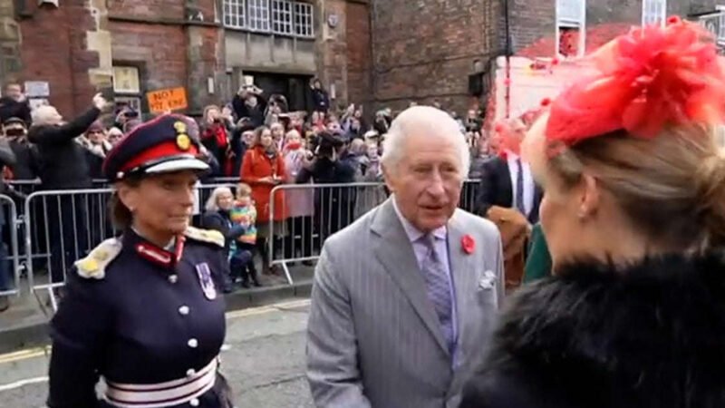Król Karol obrzucony jajkami