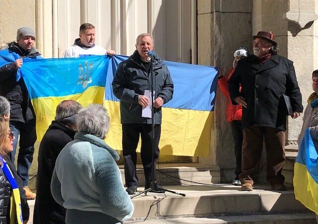 Manifestacja wsparcia dla Ukrainy. Senator Durbin ponowił deklarację solidarności z walczącym narodem ukraińskim