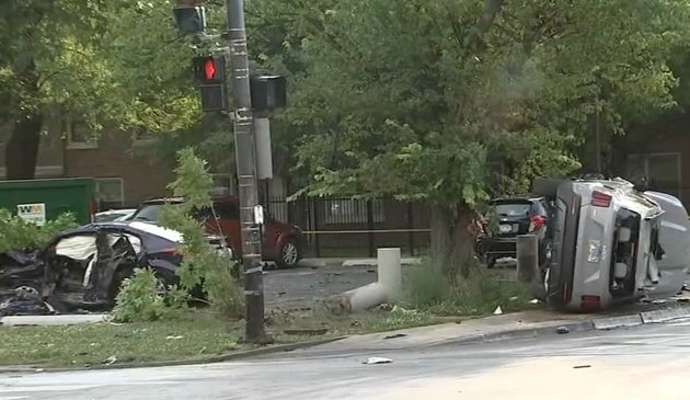 Wypadek w chicagowskiej dzielnicy Little Village. Samochody dachowały