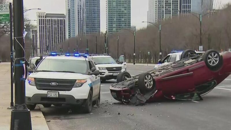 Wypadek w pobliżu fontanny Buckingham. Auto wjechało w policyjne SUV
